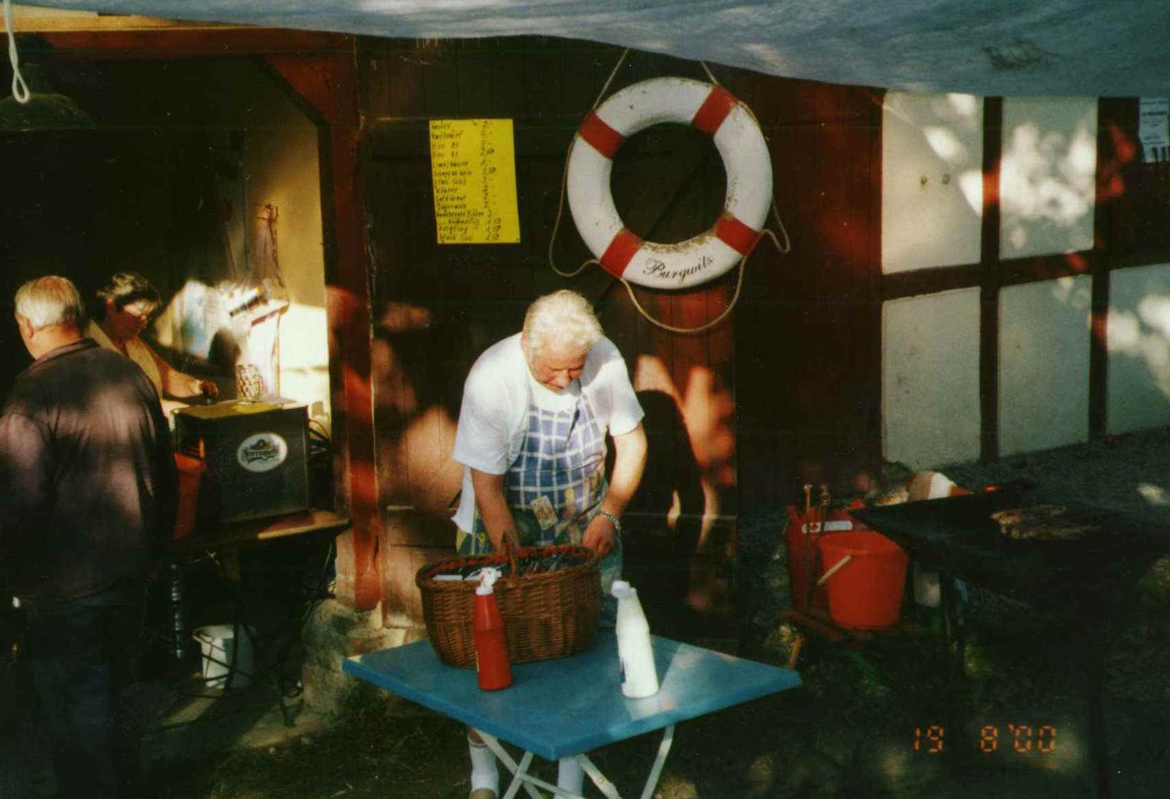 Termin war Samstag der 10. August 2001. Am Nachmittag began nach dem gemeinsamen Aufbau das fröhliche Teichfest mit einem Kaffetrinken, natürlich mit selbstgebackenem leckeren Kuchen. Fürs leibliche Wohl sorgte wie auch in den vergangenen Jahren "Lore" und Mann aus Neunhofen.